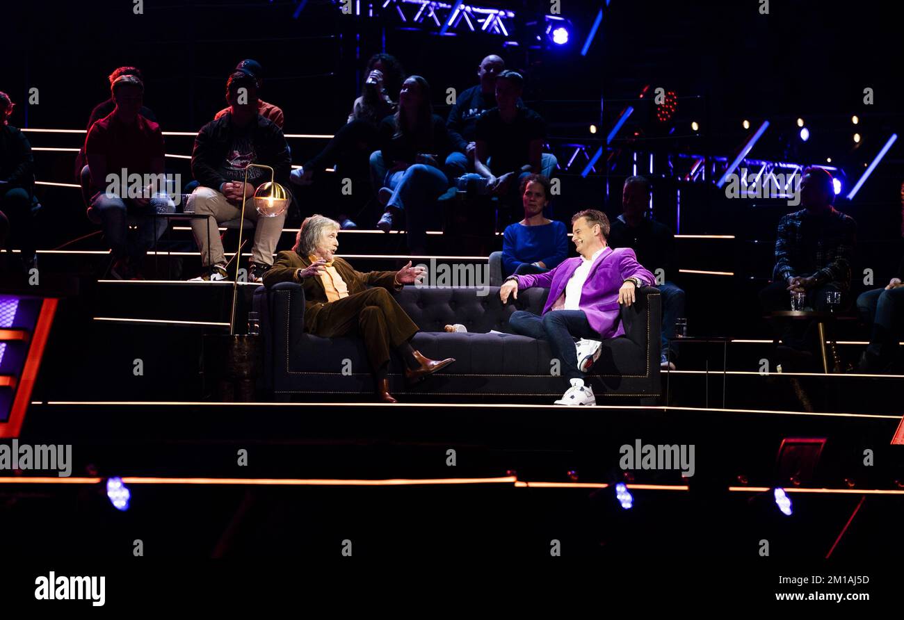 Amsterdam Johan Derksen Und Wilfred Genee Wahrend Einer Live Ausgabe Der Talkshow Today Inside Im Ziggo Dome Sie Blickt Unter Anderem Auf Die Letzten Zwanzig Jahre Zuruck Und Spricht Uber Die Weltmeisterschaft
